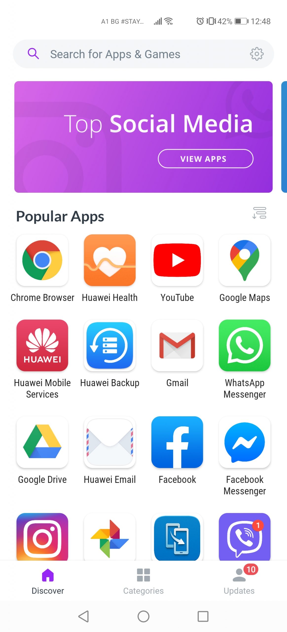 Пазар за приложения от Huawei. Прекрасна идея и надежден източник (надявам се), за инсталация на приложения. За съжаление, все още не е толкова богат на приложения, както е Play Store на Google.
