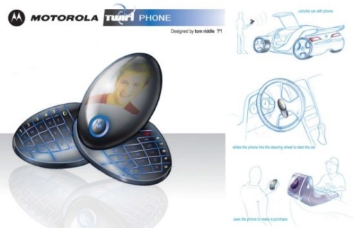 Концептуалният телефон Motorola Twirl е един от тези мобилни телефони, който може да се използва за нещо повече от комуникация. Устройството е творение на Том Ридъл, ню йорокски дизайнер и както забелязвате от снимката, това е тристранно устройство. Физическият дизайн обхваща три овални форми, които се въртят около осна опорна точка. Разтворете ги в тристранна позиция, за да разкриете клавиатурата разделена на половина в лявата и дясна страна. Ергономичността на телефона го прави лесен за употреба и навигация.