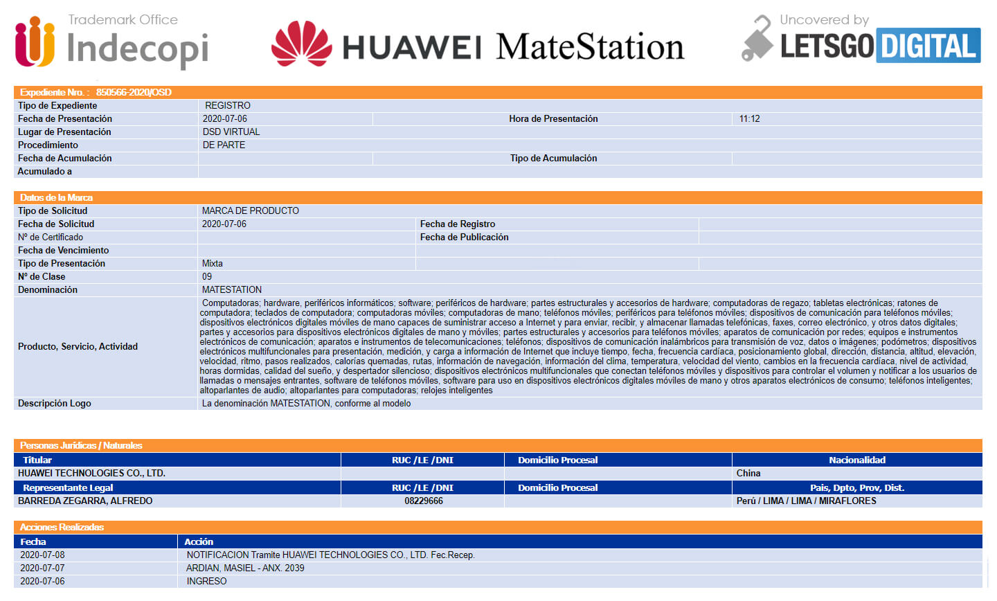 Според LetsGoDigital, Huawei са кандидатствали в EUIPO (Служба за интелектуална собственост на Европейския съюз), за търговска марка “Mate V”, описваща смартфони, мобилни телефони и други. Въпреки, че не е съвсе ясно, за кой точно продукт Huawei ще използват новата търговска марка, има спекулации, че най-вероятно ще става въпрос за сгъваем смартфон (заради V).